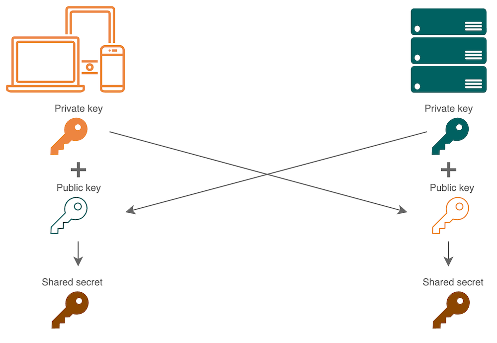 In the course of the Diffie-Hellman key exchange algorithm, computers exchange their public keys, and then each of them generates the same shared secret value from its private key and the public key of the other computer.