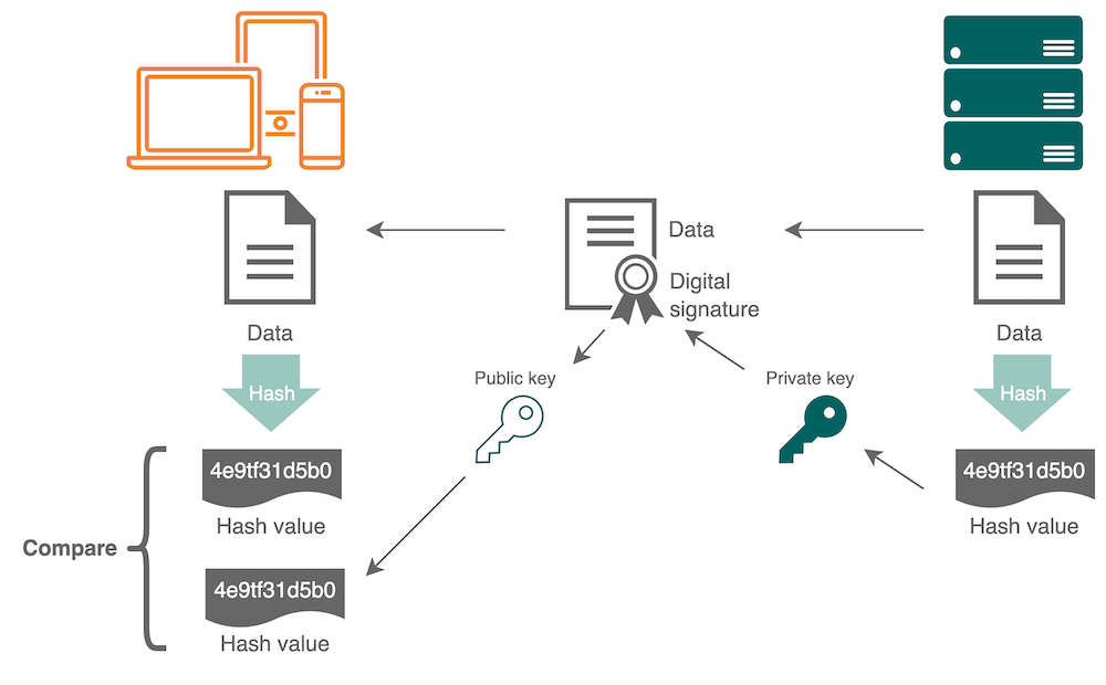 Computers authenticate themselves with the help of digital signatures generated with their private keys. They also distribute their public keys to other entities. Public keys are used to verify digital signatures created with the related private keys. In this case, private keys encrypt data and public keys decrypt it.