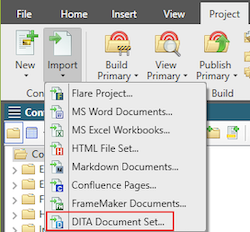 The legacy system uses DITA for structuring XML files, so to import the files to Flare, you use the DITA import feature that simplifies the conversion of such files.
